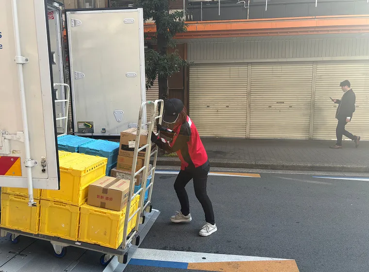 センターで仕分された商品を夜間に配送する業務です。小口配送メインで、勤務時間はほぼ一定で長距離の出張もありません。1日の配送件数は10件~20件前後になります。台車を使った積み下ろしメインで体への負担も少なく女性も活躍しています。